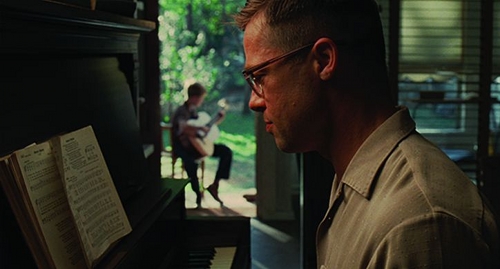 For example, I love the dinosaur scene because I see it as a defining moment for nature and for mankind (in the same way the apes using the tools in the opening of 2001, an obvious influence on this film, was a defining moment in the Dawn of Man section…this, in fact, could be titled The Dawn of Grace). I also love the clear nature/grace dichotomy Malick is setting up with the parents: the father (who demands to be called “father,” not “dad,”) is clearly the God of the Hebrew Bible (the giver of life [notice how he’s always watering the lawn and caring for the garden], arbitrary, needy) while the mother is clearly the representation of grace, the New Testament God (the God that would be called dad, the nurturer of life). The father has arbitrary rules (like God) while the mother is there to instill the day-to-day niceties that make existence, for her, make sense. These readings are clearly based in spirituality (I am reluctant to use the term religion because spirituality predates religion as we know it today), and I understand that not everyone is going to be as affected by this reading as I was; that’s just one of the many beautiful things about this picture.